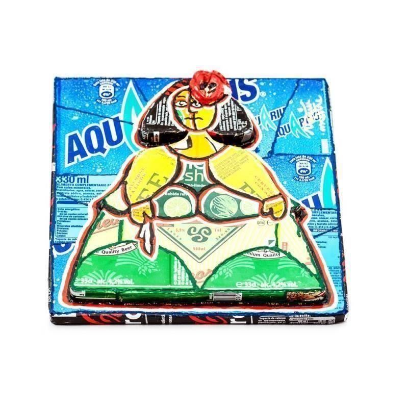 Cameleonia va ofera o decoratiune tip tablou, 20x20 cm, in relief, din material reciclat, ce infatiseaza o femeie din tabloul lui Velazquez, Las Meninas.