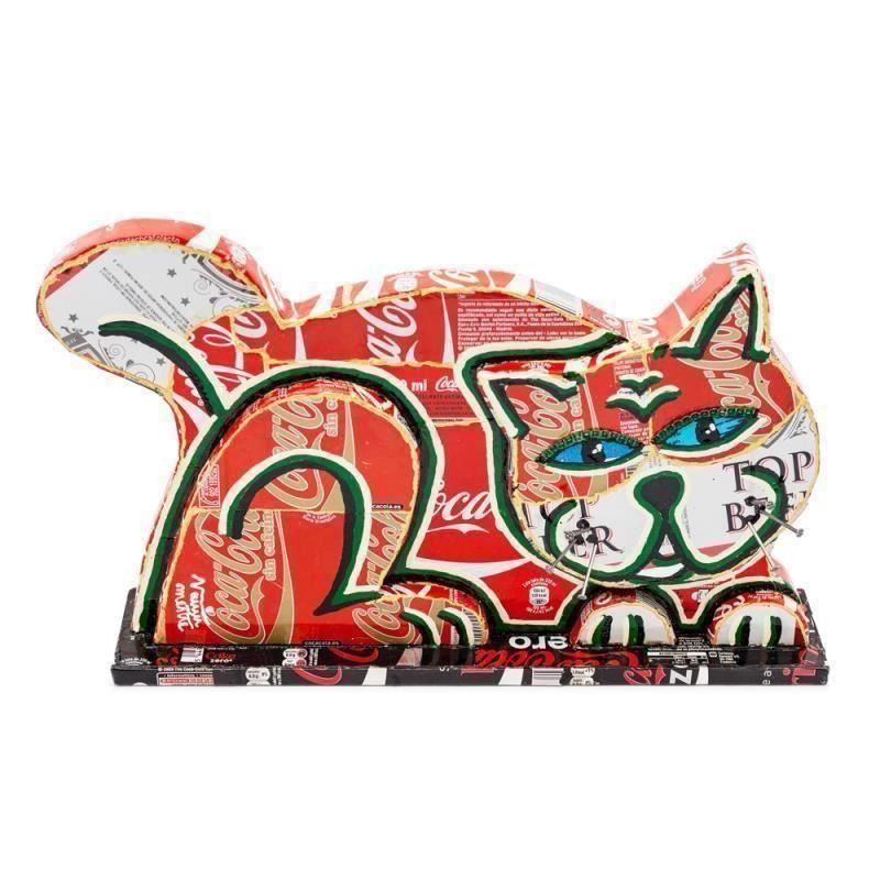 Cameleonia va propune o decoratiune in relief, din material reciclat, in format mediu, 40x25 cm, ce infatiseaza o pisica de culoarea rosie.